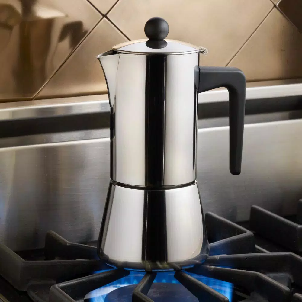 - Crafted from durable stainless steel, the espresso maker features classic Italian-style design