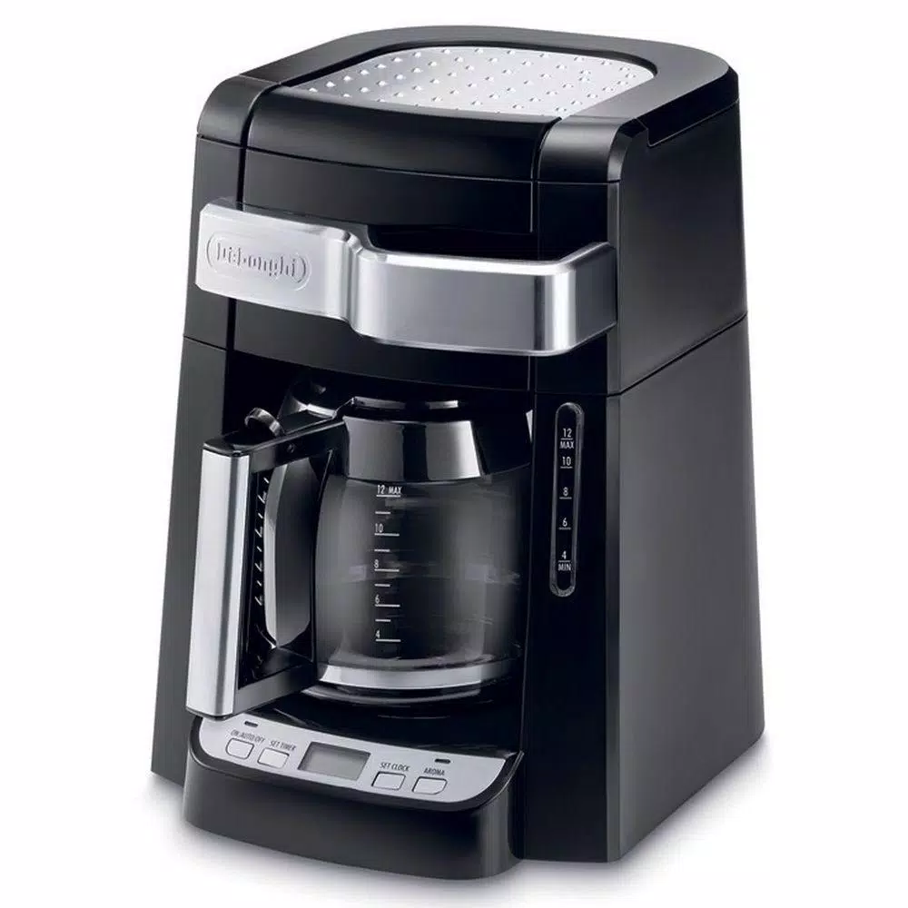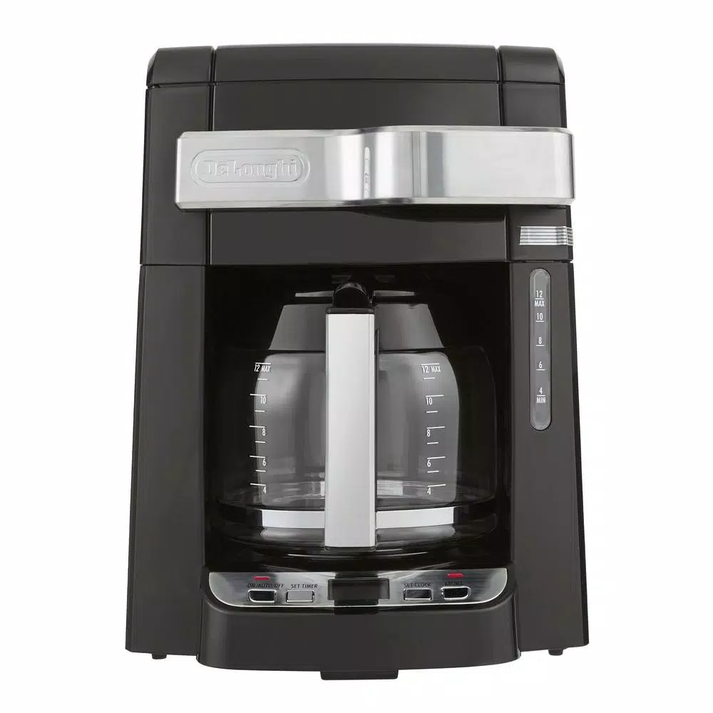 Are you tired of having to move your coffee maker in the morning to just add water and fill it with coffee? Never move your coffee maker again with the De’Longhi 12-Cup Drip Coffee Maker with Complete Front Access! Simply pull the handle on the front of the machine, and easily access the water channel and coffee filter. Once the coffee maker is ready to go, select the Aroma button if you prefer a more full bodied brew. It time-releases water to saturate coffee grounds a little at a time to extract a fuller flavor. To ensure the best flavor, the durable and long lasting gold-tone filter is specially designed to keep even the finest grounds out of your coffee. And there’s nothing better than waking up to the aroma of fresh-brewed coffee in the morning. Use the 24-hour digital timer to program the precise moment you want to enjoy your morning jolt. Perfectly piping hot coffee should be poured into a warm mug for ideal taste and temperature. Take advantage of the built-in cup storage tray for warm, ready-to-use cups. Other highlights include non-stick warming plate, pause and serve, water level indicator and cord storage. Enjoy coffee for years to come.