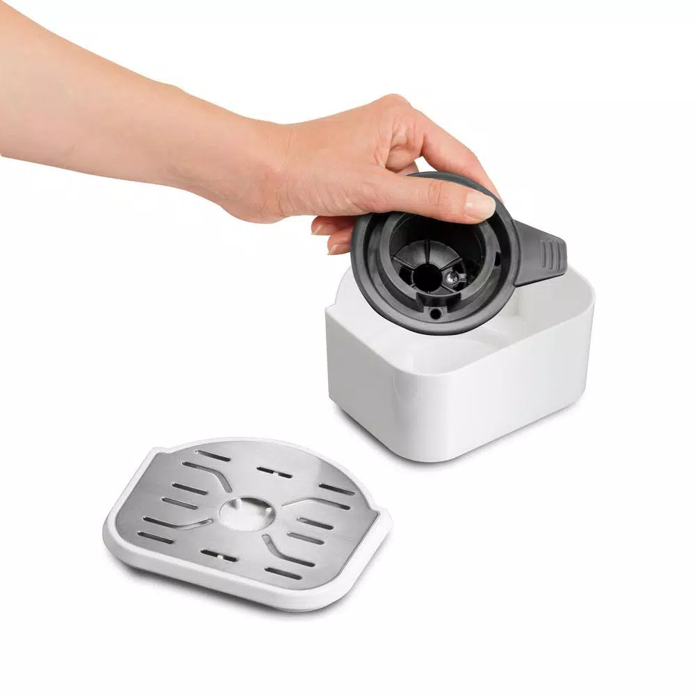 No two coffee drinkers are the same – so when you make coffee at home, the flexibility to customize how and what you brew is key. From fresh grounds to K-Cup** pods, the Hamilton Beach FlexBrew) 2-Way Coffee Maker gives you the options to please fans of all types of coffees and quantities. This combo coffee maker lets you brew a full pot using your favorite grounds on the carafe side, or make a cup for yourself using a single-serve pod or grounds on the single-serve side. Each side has an easy-fill water reservoir with separate windows, so there’s never any confusion or over-filling. You can also choose between regular or bold brew strength on both sides. The full-pot side brews up to 12 cups of coffee using grounds. It includes a programmable clock with 2-hour keep warm cycle, automatic shutoff, and automatic pause and serve. The single-serve side can brew up to 10 oz. with a single-serve pod, or fill a 14 oz. travel mug when using coffee grounds. A removable cup rest doubles as a storage container for single-serve pods or to hold the brew basket.