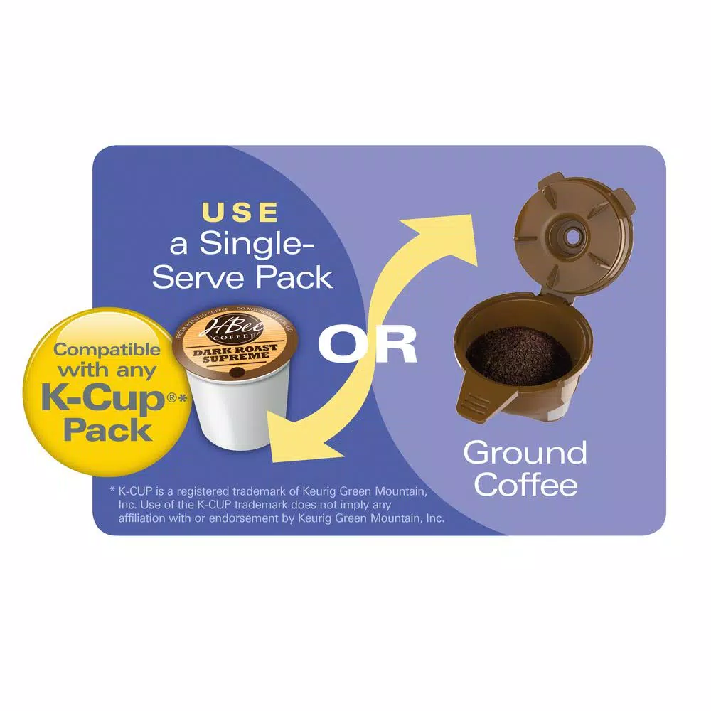 - Brew up to 10 oz. with a single-serve pack or up to 14 oz. with ground coffee