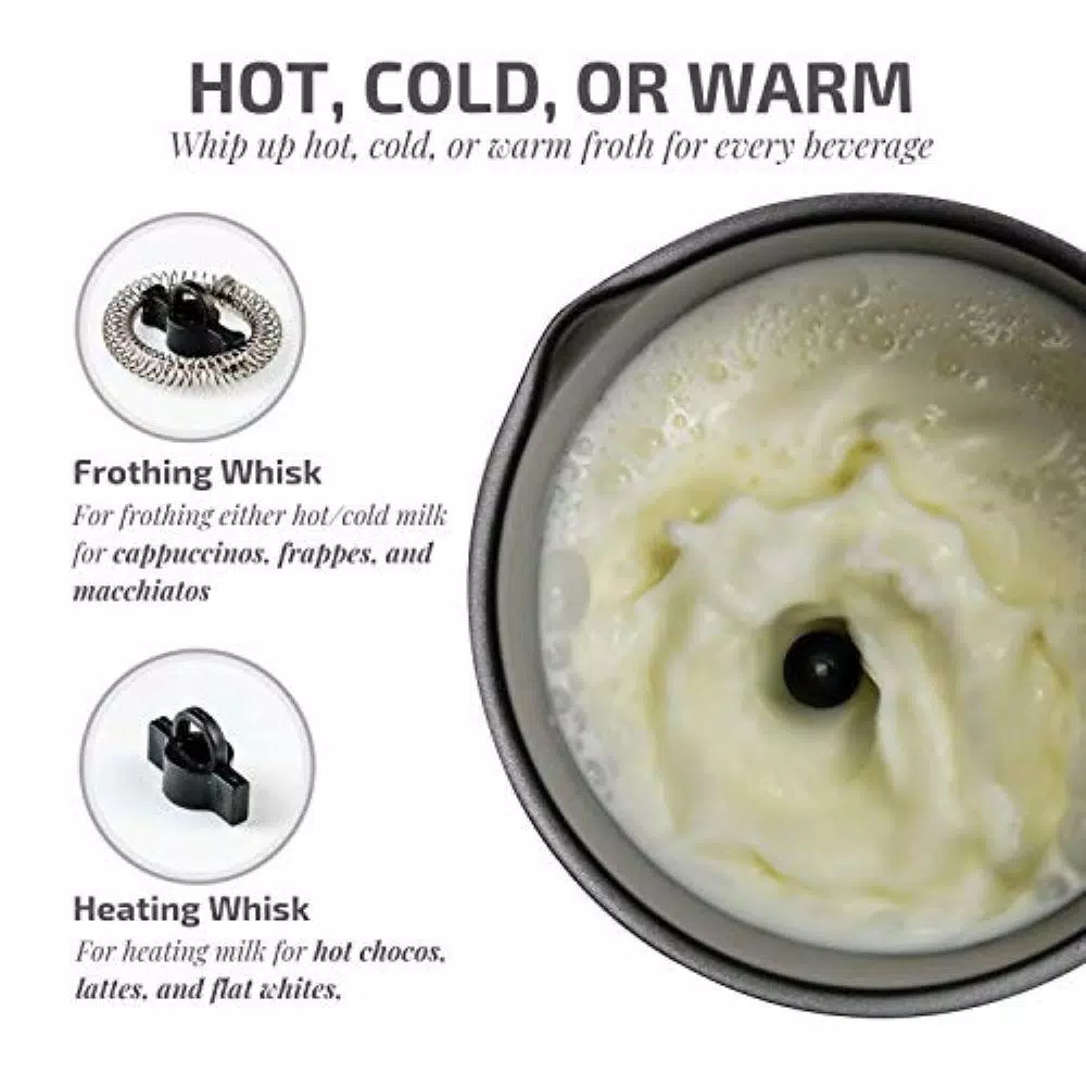 - Heater and frother in one the ovente deluxe milk frother come with two whisks for heating and frothing milk it can whip up both hot or cold foam and heat milk, giving you endless options for your caffeine game with this, you can spice up regular beverages and turn it into unique creamy creations, from early morning espressos to late-night hot cocoas