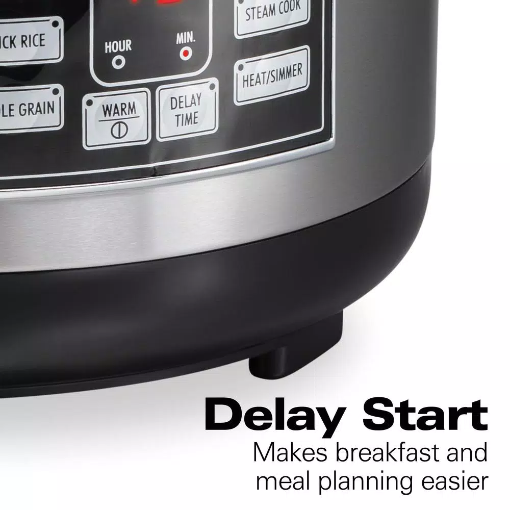 Hamilton Beach Rice/Hot Cereal Cooker More than a rice cooker. From breakfast to dinner, the Hamilton Beach Rice/Hot Cereal Cooker lets you cook a variety of foods effortlessly. Cook grains, hot cereals or even your favorite packaged rice mix without having to boil water or set a timer. All you have to do is place the ingredients in the nonstick pot, turn it on, select the setting and let everything cook to perfection. Use the included 2-in-1 basket to rinse rice or grains ahead of cooking or use it to steam everything from salmon to zucchini. The delay start lets you plan ahead and have your meal ready when you want it. The cooker automatically shifts to Warm once the cooking cycle is complete.