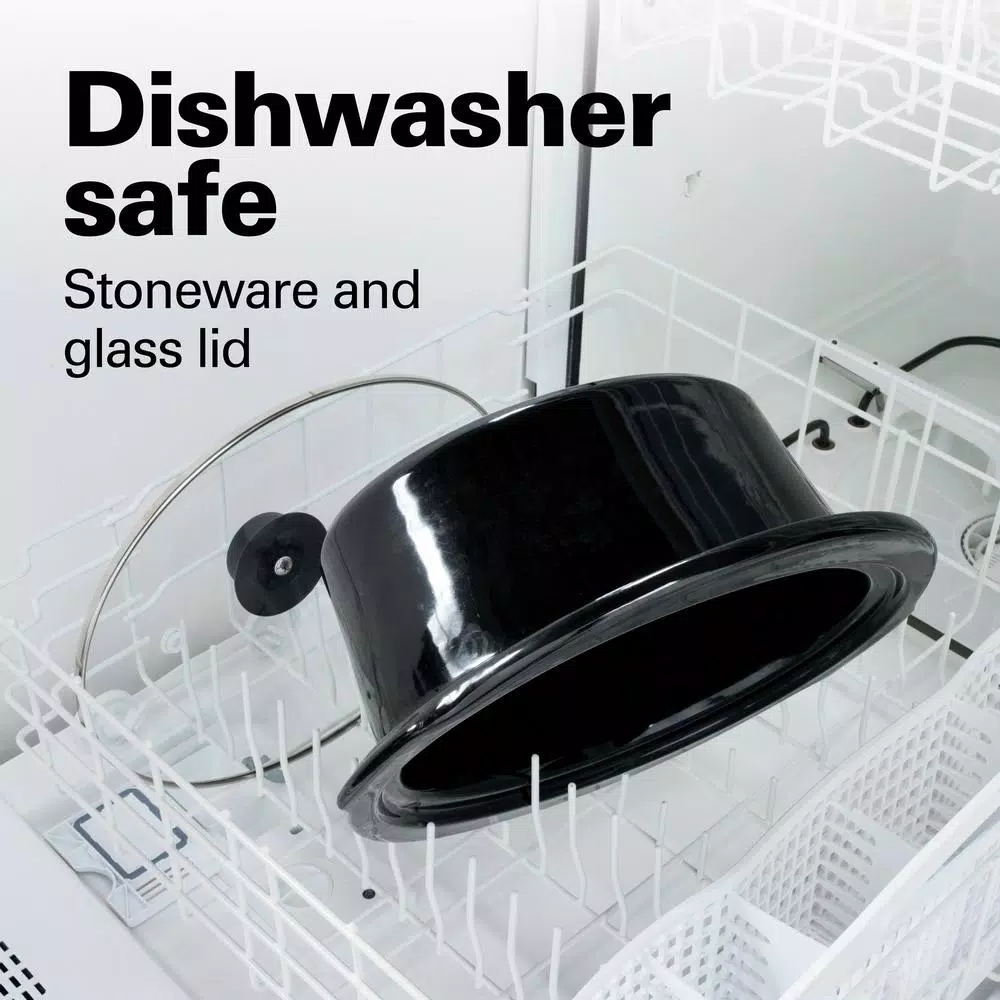 The Hamilton Beach Programmable Stay or Go Slow Cooker makes it easy and mess-free to travel with food thanks to the clever clip-tight sealed lid. This versatile cooker also has more programming options than the Crock-Pot Smart-Pot Slow Cooker*. You can mix and match temperature settings with your choice of cooking times. It automatically switches to warm when cooking time is complete, so you can set it and forget it. The large size and oval shape make it ideal for cooking large cuts of meat; for example, it will hold a 6 lb. chicken or 4 lb. roast. A built-in lid rest conveniently holds the lid open to free up your hands for easy serving. Great for entertaining. The removable stoneware crock and glass lid are both dishwasher safe for easy cleanup. A Party Dipper Food Warmer that’s perfect for serving dips and appetizers is included.