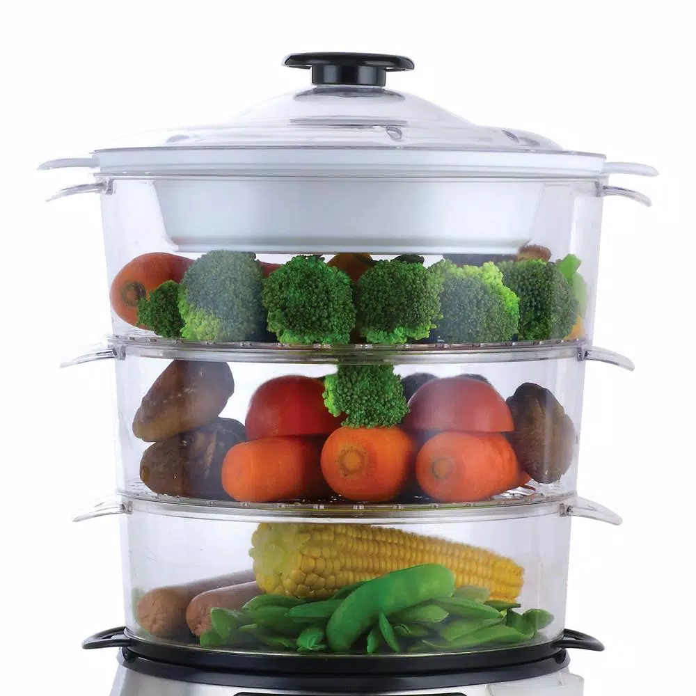 Healthy meals are easy to create with the Magic Chef 3 Tier Steamer. Seven one- touch programs makes it easy to use and includes chicken, rice and vegetable settings. Its 12 quart capacity, allows you to steam an entire meal. Parts are dishwasher safe for easy clean-up.