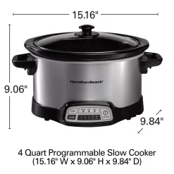 Cookers Hamilton Beach 4 Qt. Black Chrome Slow Cooker With Temperature Settings And Glass Lid