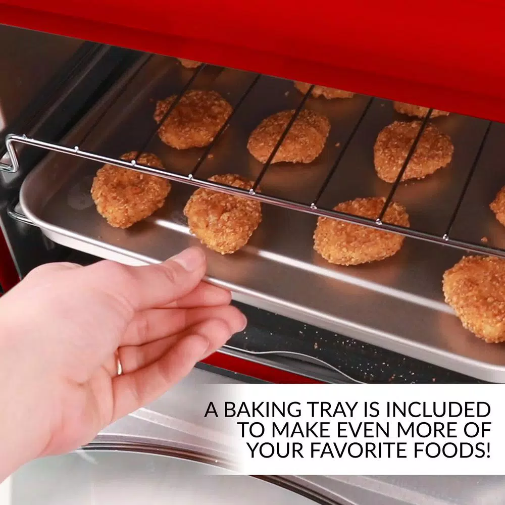 - Easy clean up: as if cooking isn’t easy enough, the baking pan, wire racks and crumb tray are removable, making cleanup a breeze