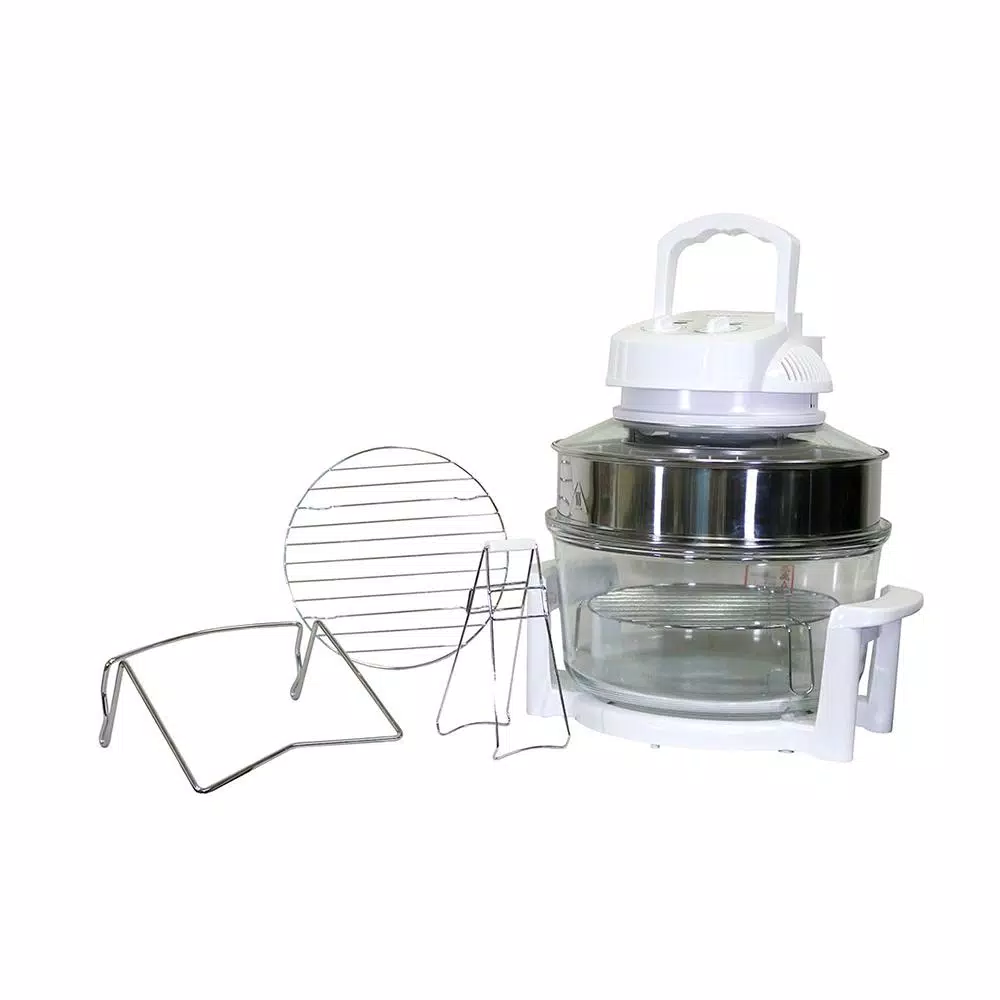 Tayama TO-2000XR Turbo Oven 12 Qt to 18 Qt. Rating: 120-Volt 60Hz 1300 Watt. This multi-purpose convection oven can be used to bake, grill, roast or steam – all in less time. The convection cooker preserves nutrients and keeps meats tender. By circulating fan-forced heated air over surfaces, the electric convection oven evenly maintains temperature. The counter top convection oven has a high-temp safety glass body.